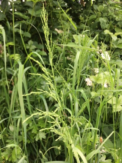 Rough stalked meadow grass (Poa trivialis) is a very common perennial species throughout the UK and Europe. It can be found in lowland pastures, river meadows and waste ground. Recognisable from its tufted habit and erect culms. It is generally leafy towards the base, and will fill out the bottom of the sward as it tolerates partial shading.