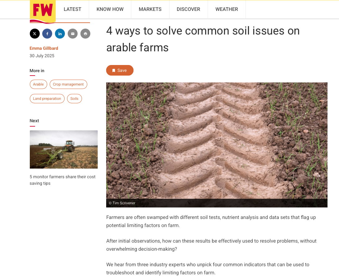 The feature looks at how 'Farmers are often swamped with different soil tests, nutrient analysis and data sets that flag up potential limiting factors on farm' and asks 'after initial observations, how can these results be effectively used to resolve problems, without overwhelming decision-making?'