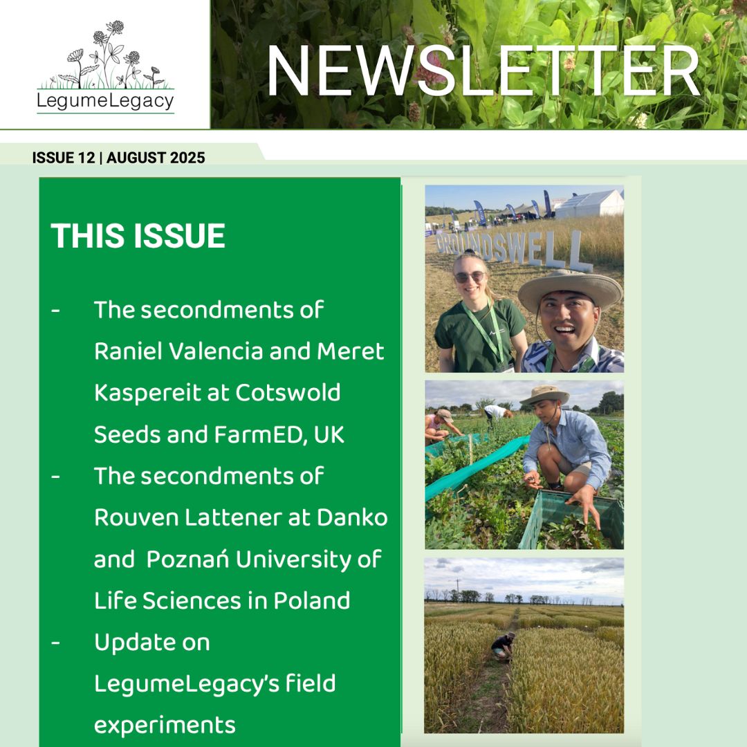 The latest issue of the Legume Legacy Newsletter iccludes features details of the secondments of Raniel Valencia and Meret Kaspereit at Cotswold Seeds and FarmED.