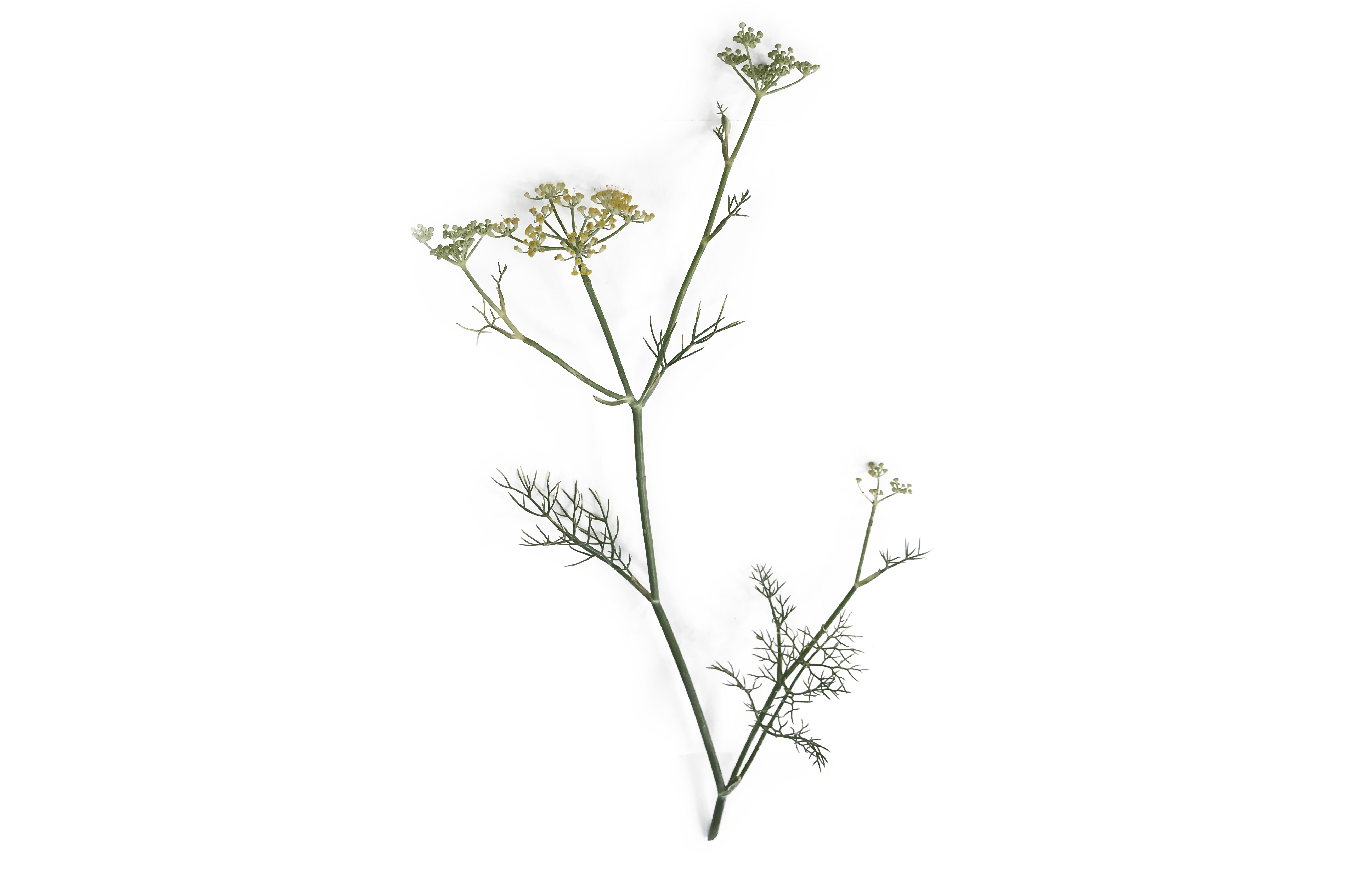 Compound umbels form clsuters of 20-50 small mustard yellow flowers on short pedicels. Blooms in July-August. Forms triternate, finely dissected branches, leaves are thread-like, only 0.5mm wide. Stem is hollow, erect and light green in colour, reaching up to 2.5m. As the plant dies off in winter, it remains as a woody skeleton.