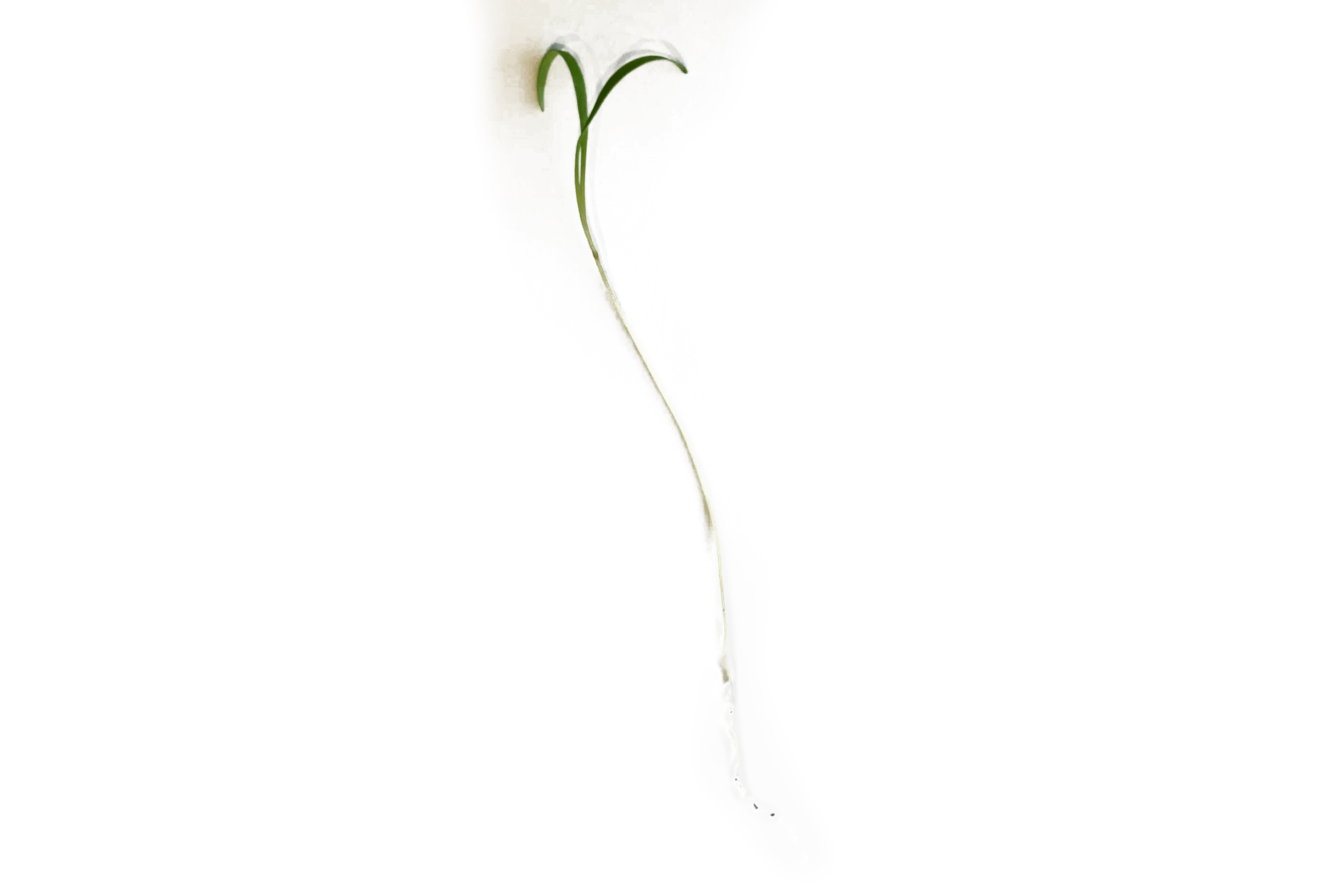 Two distinct cotyledons, they are longer than the first true leaf. First true leaf is finely dissected, with thread-like (filiform) leaves.