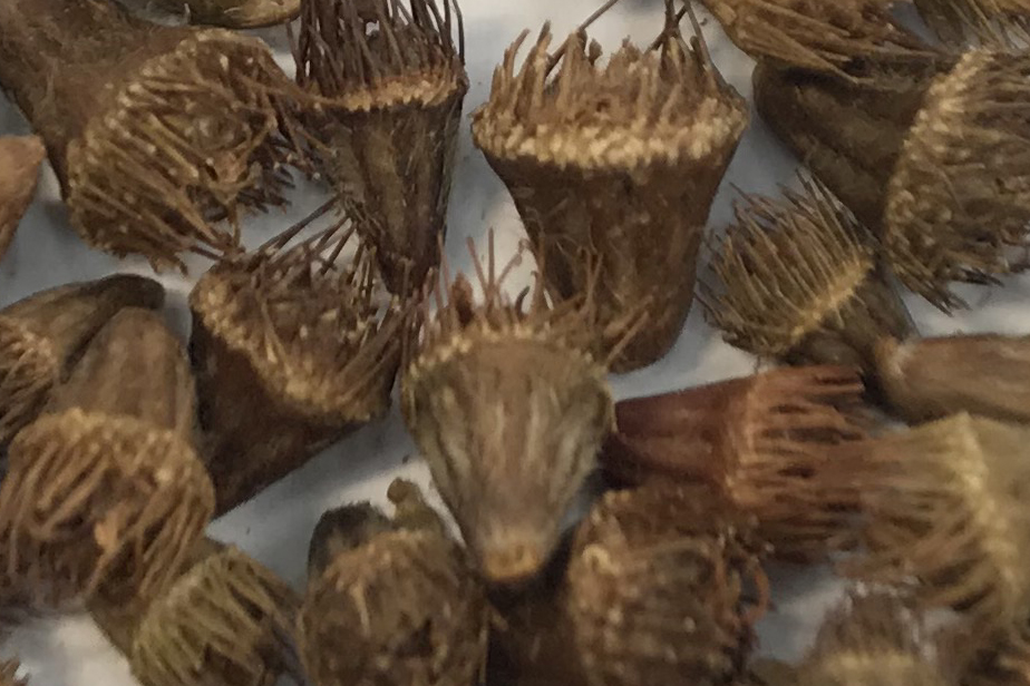 Agrimony seeds are extremely spiny and brown/green in colour. Due to the hooked burs they stick to things that brush by for seed dispersal.